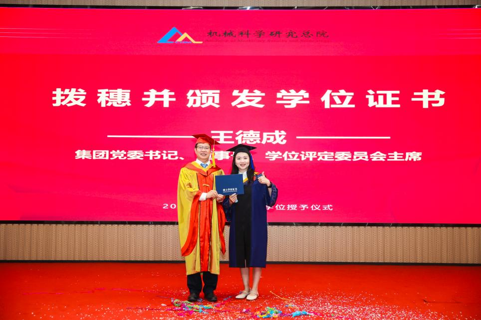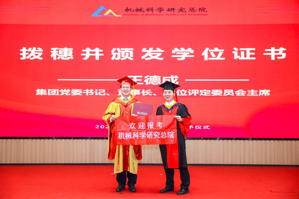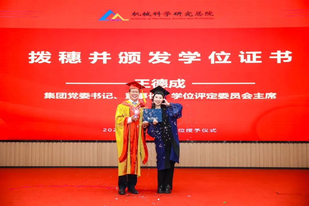 李?lèi)?ài)國(guó)宣讀了《機(jī)械科學(xué)研究總院2025屆畢業(yè)生學(xué)位授予決定》,王德成為每位畢業(yè)生撥穗正冠并頒發(fā)學(xué)位證書(shū)。