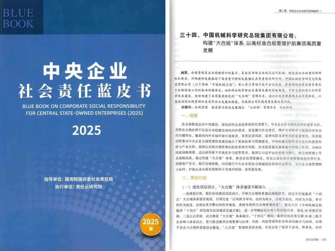 12月5日,2025年中央企業(yè)和地方國企社會(huì)責(zé)任藍(lán)皮書發(fā)布會(huì)在京召開,集團(tuán)黨委委員、副總經(jīng)理王宇出席會(huì)議。會(huì)上,《中央企業(yè)社會(huì)責(zé)任藍(lán)皮書(2025)》正式發(fā)布,集團(tuán)“...