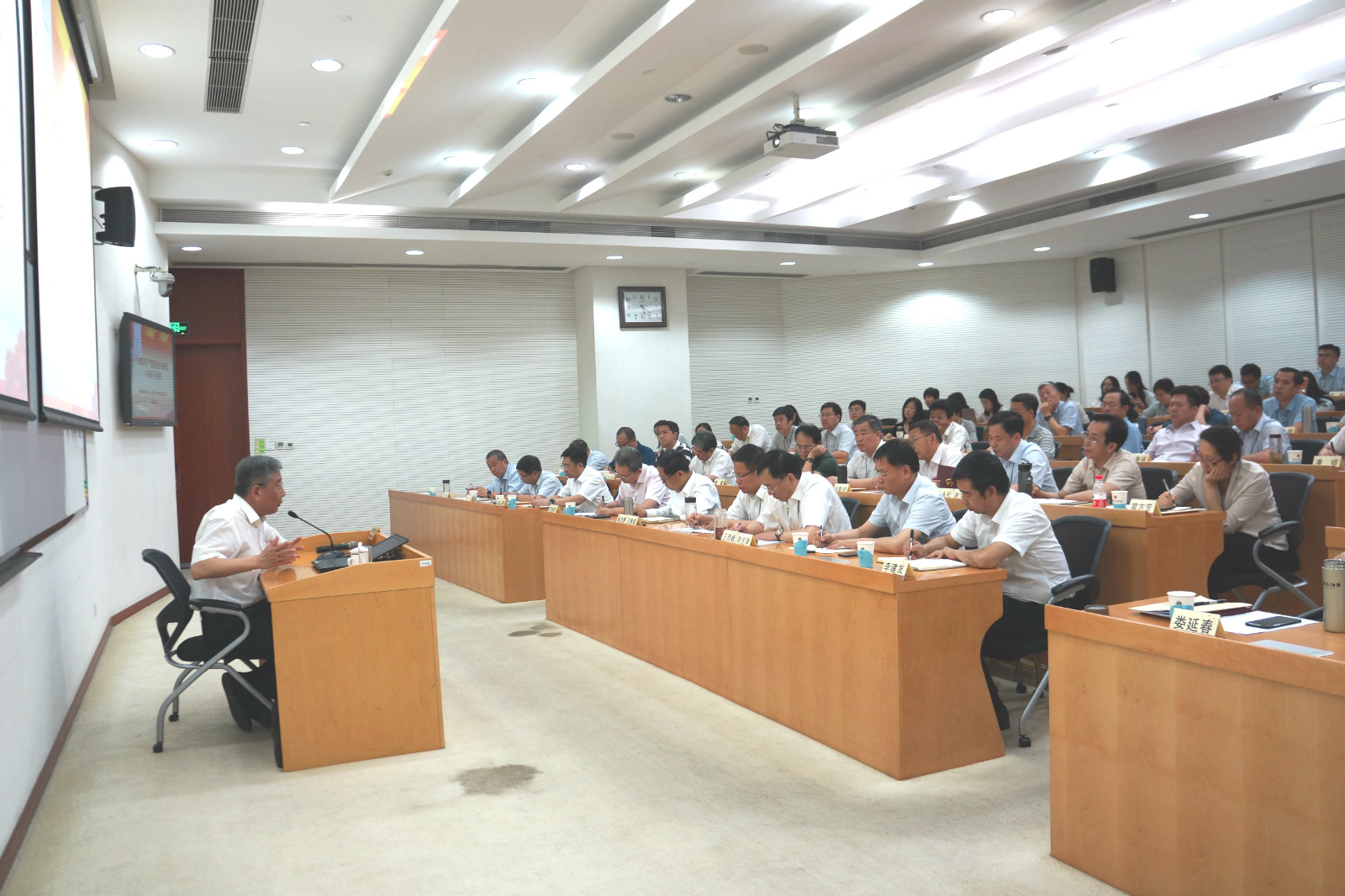 為扎實(shí)開(kāi)展“不忘初心、牢記使命”主題教育,貫徹落實(shí)國(guó)資委黨委主題教育各項(xiàng)工作要求,6月10日至6月28日,集團(tuán)黨委在中央黨校(國(guó)家行政學(xué)院)舉辦了“不忘初心、牢記使命”主題教育領(lǐng)導(dǎo)干部專題培訓(xùn)班。培訓(xùn)班分兩期,每期5天,集團(tuán)領(lǐng)導(dǎo)班子成員、二級(jí)單位班子成員、董監(jiān)高人員、黨群人事部門(mén)負(fù)責(zé)人以及總部中層以上領(lǐng)導(dǎo)干部共計(jì)140余人參加了培訓(xùn)。黨委書(shū)記、董事長(zhǎng)、總經(jīng)理王德成主持了開(kāi)班式。