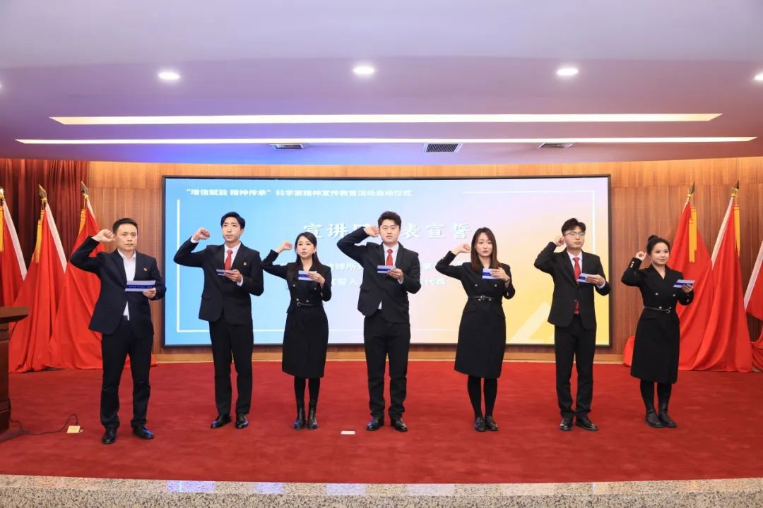 為大力弘揚科學(xué)家精神,彰顯集團科技創(chuàng)新國家隊使命擔(dān)當(dāng),會議啟動“增信賦能 精神傳承”科學(xué)家精神宣傳教育活動,李玉鑫為“尚學(xué)揚志 焊衛(wèi)匠心”宣講團成員頒發(fā)聘書,宣講團團長雷振帶領(lǐng)哈焊所青年代表進行宣誓。